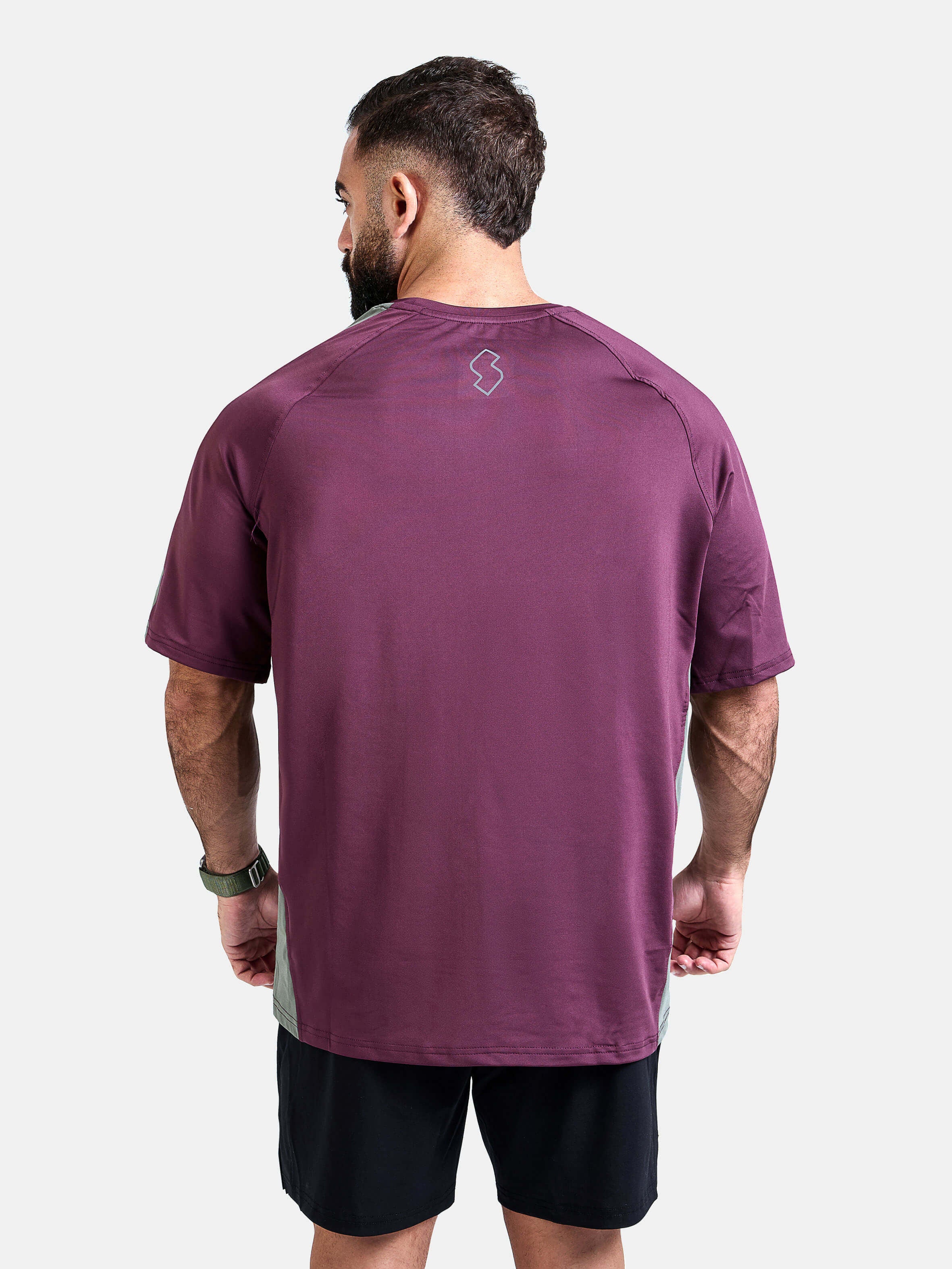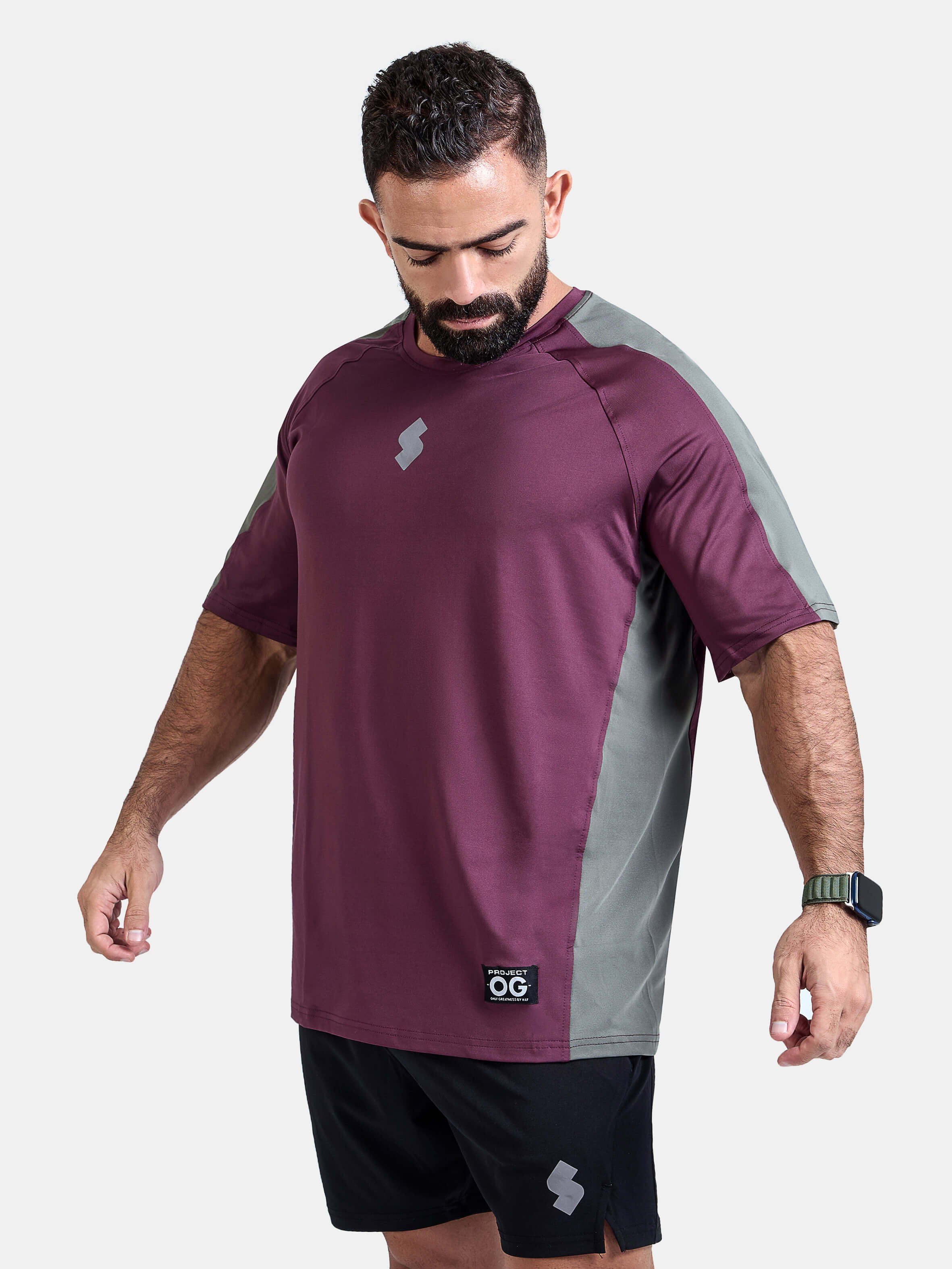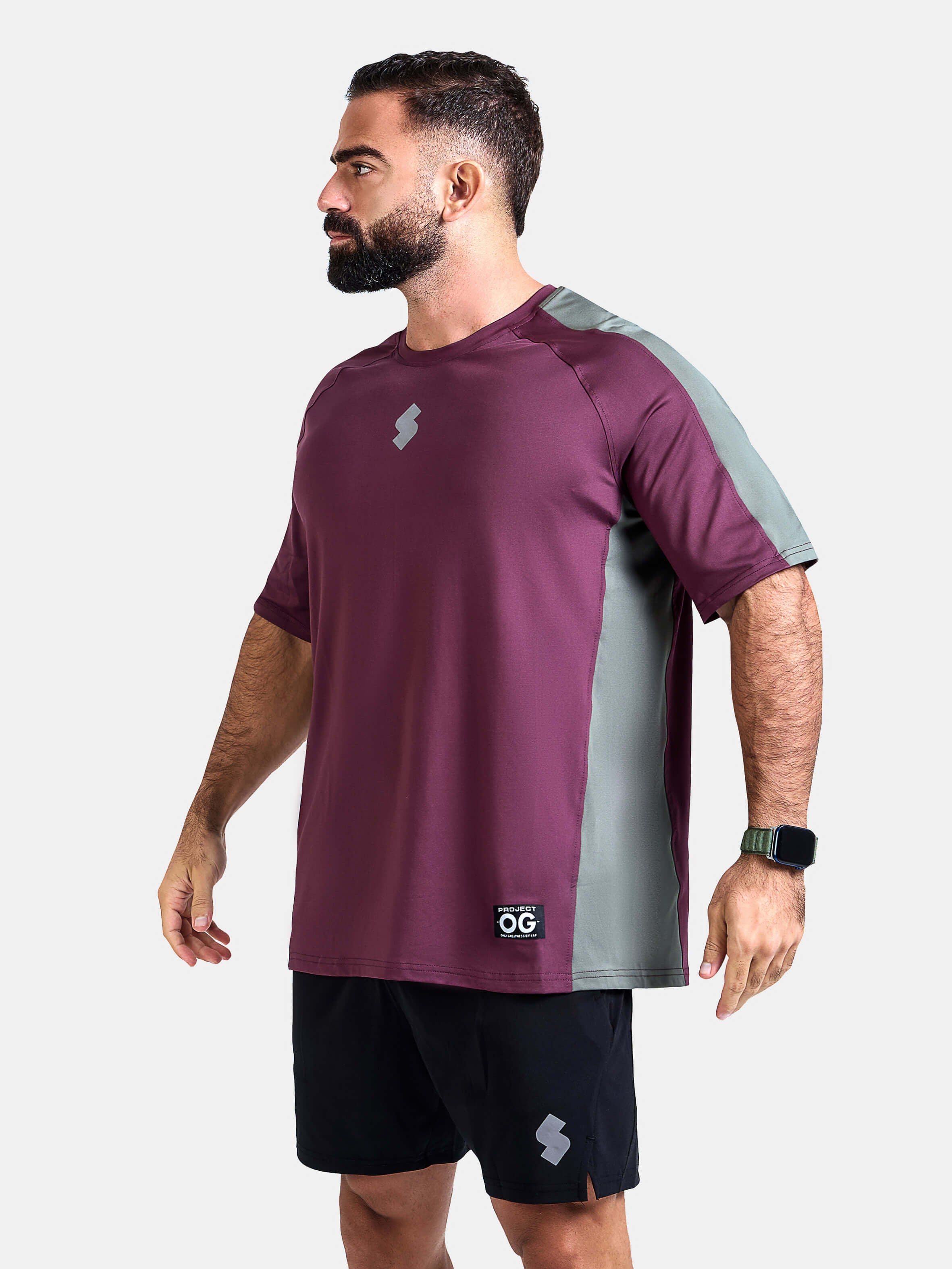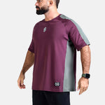 Man wearing a burgundy oversized sports & gym shirt by KAF