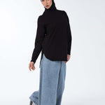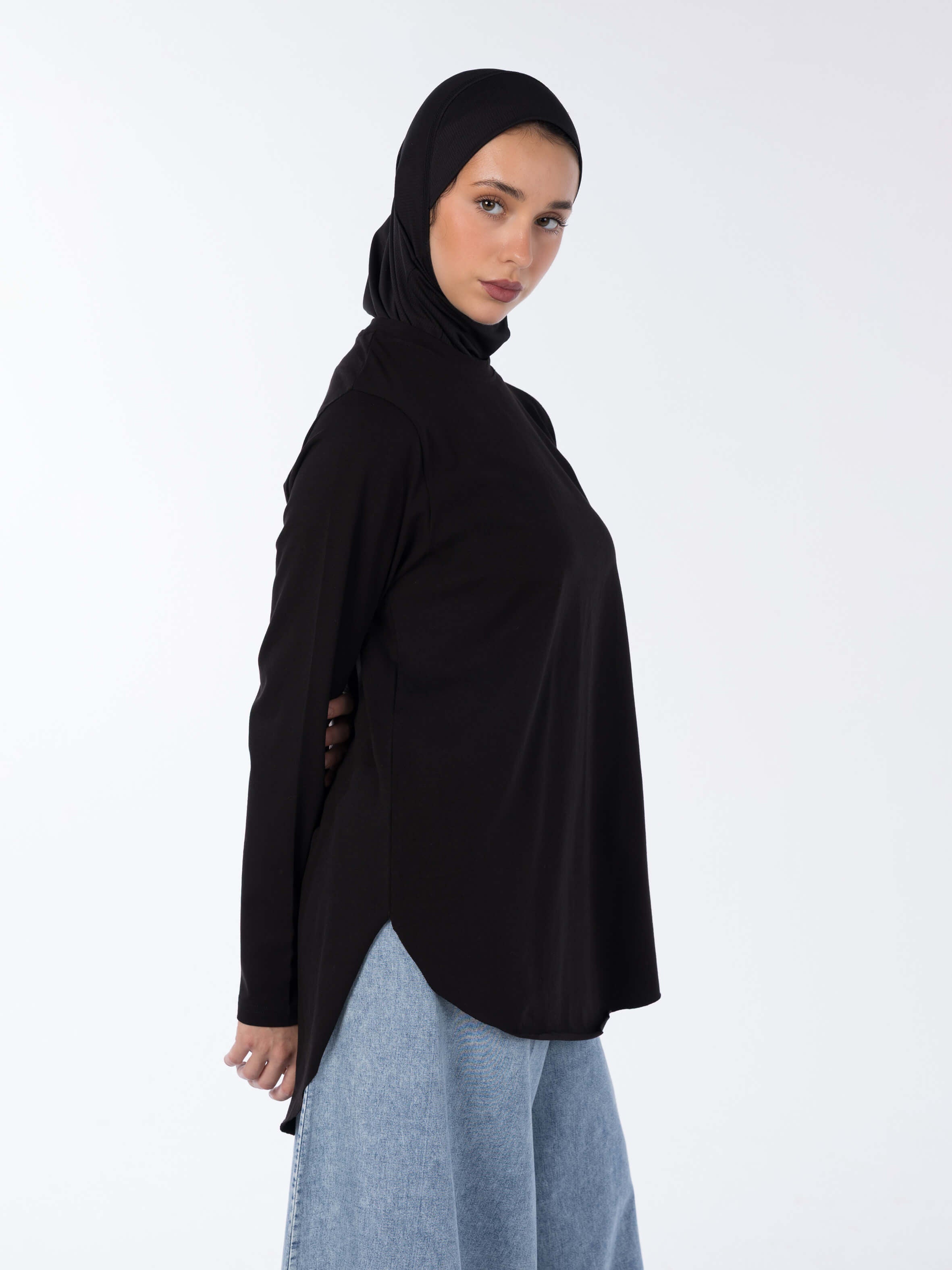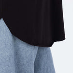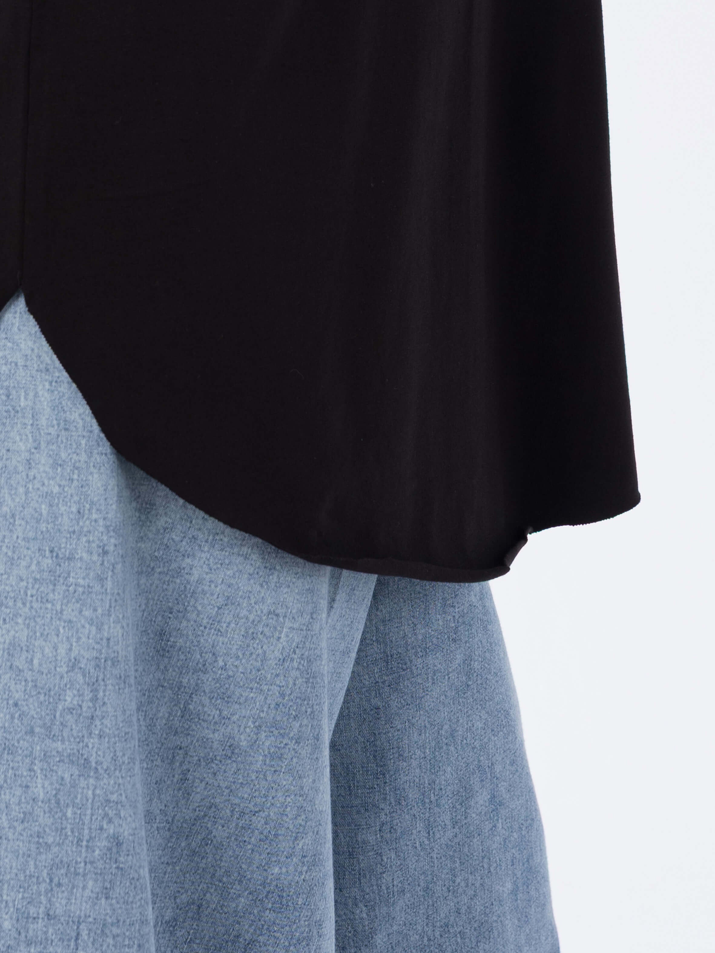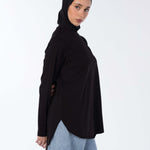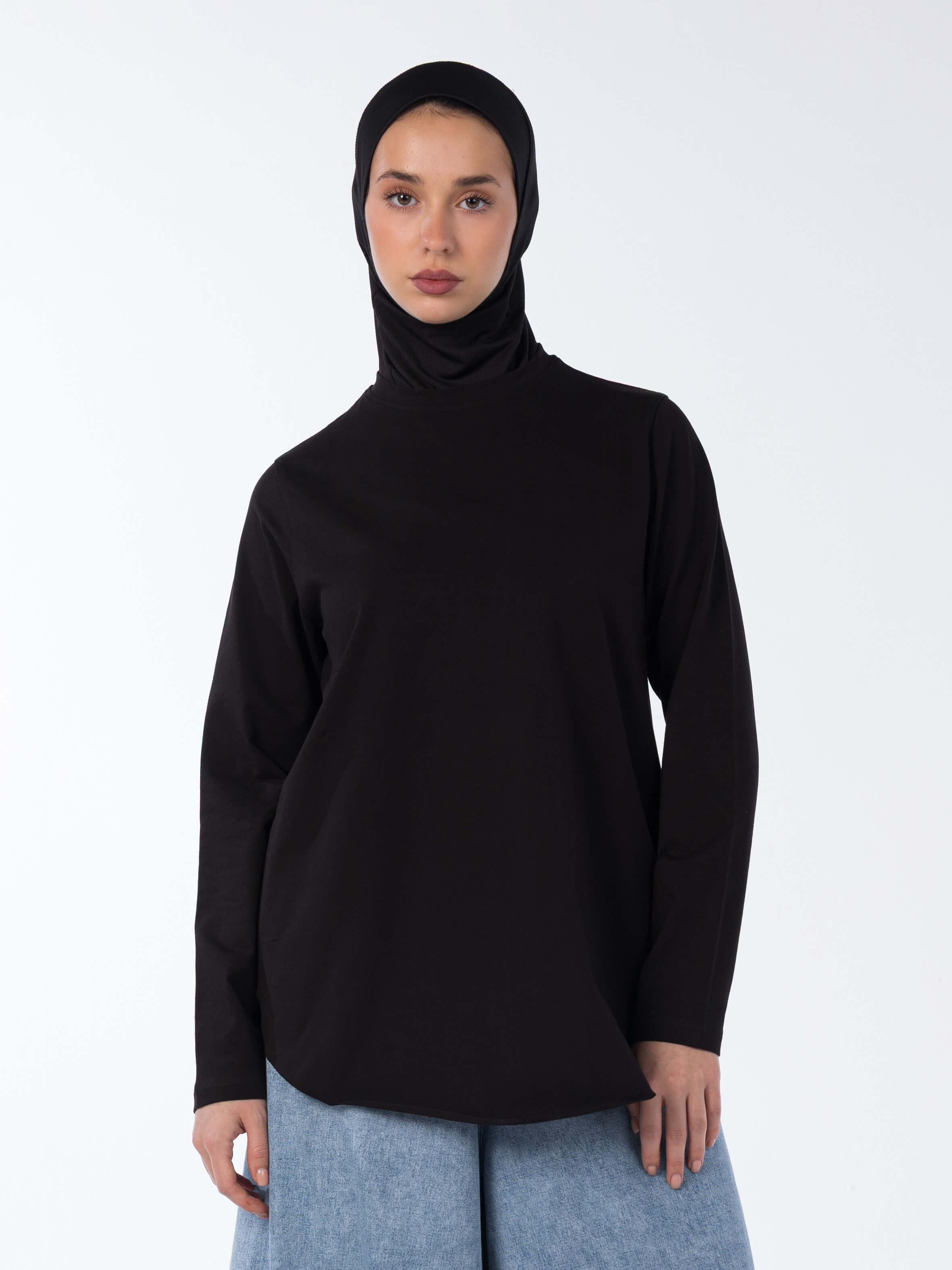 تيشرت قطني حريمي كم طويل بحافة عالنسل - أسود