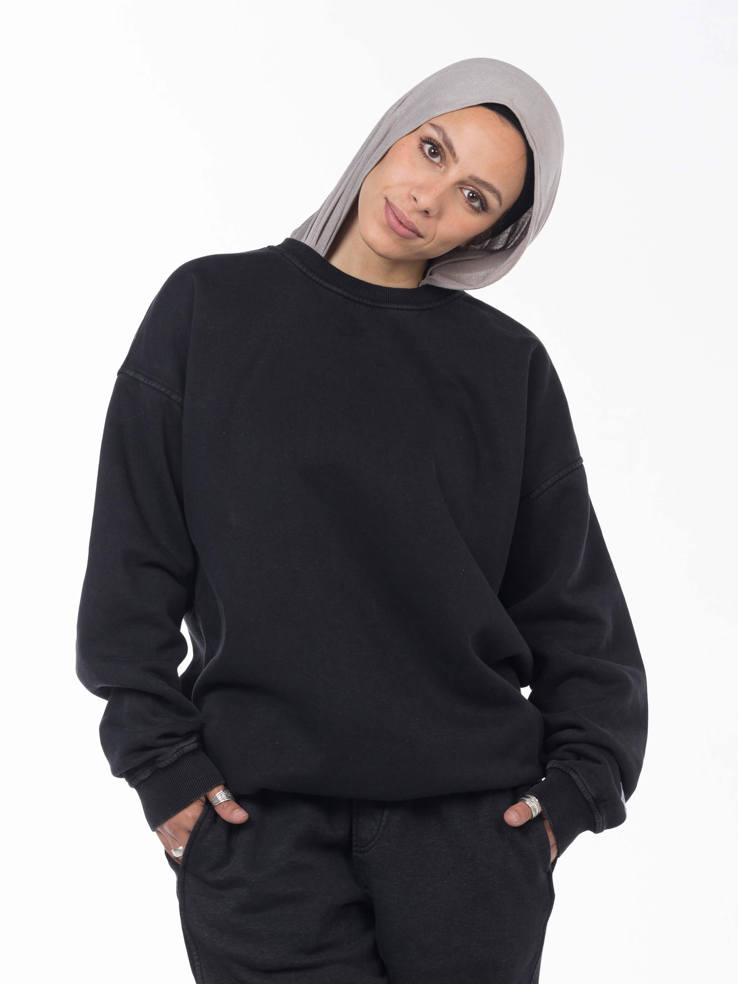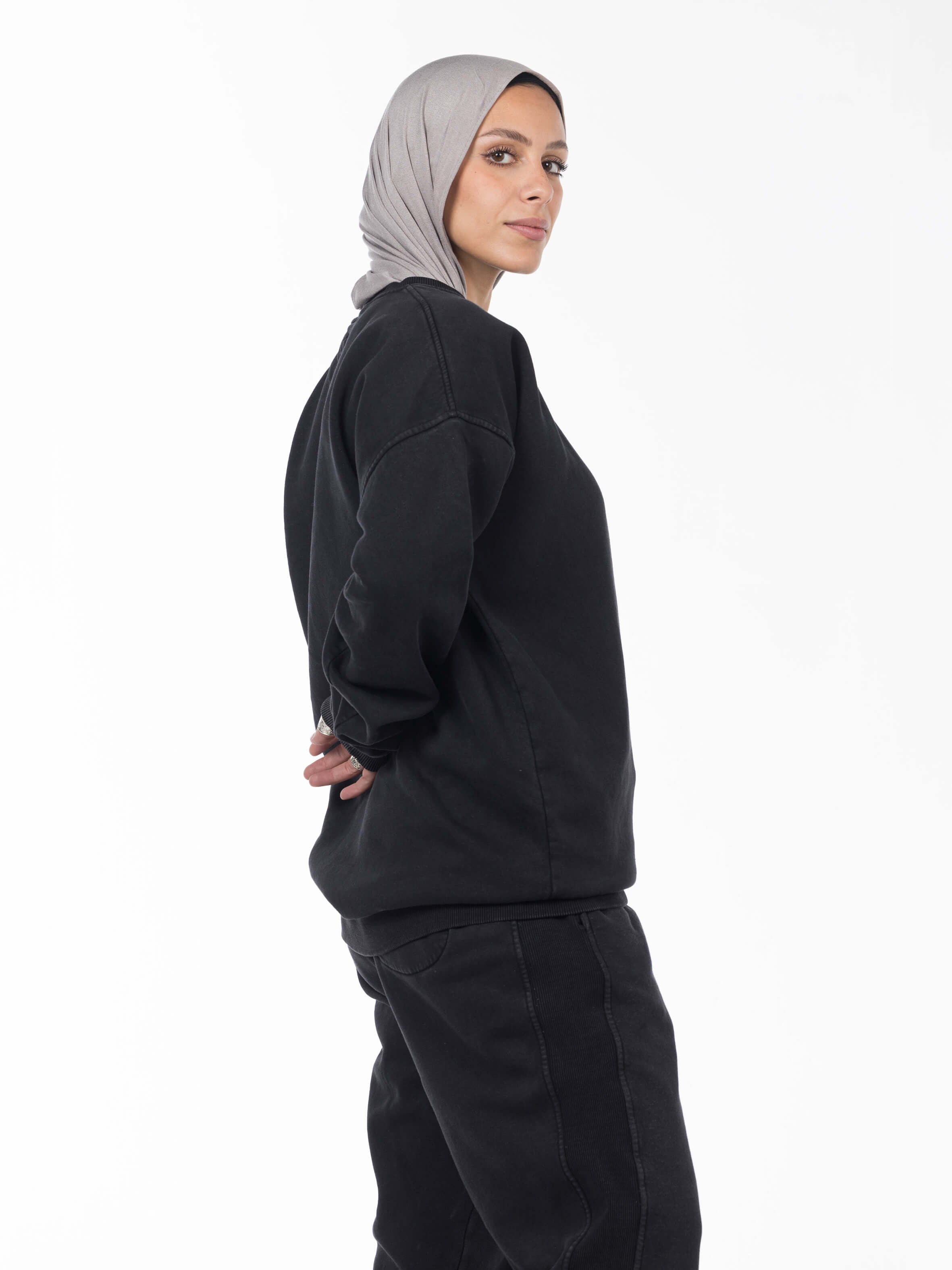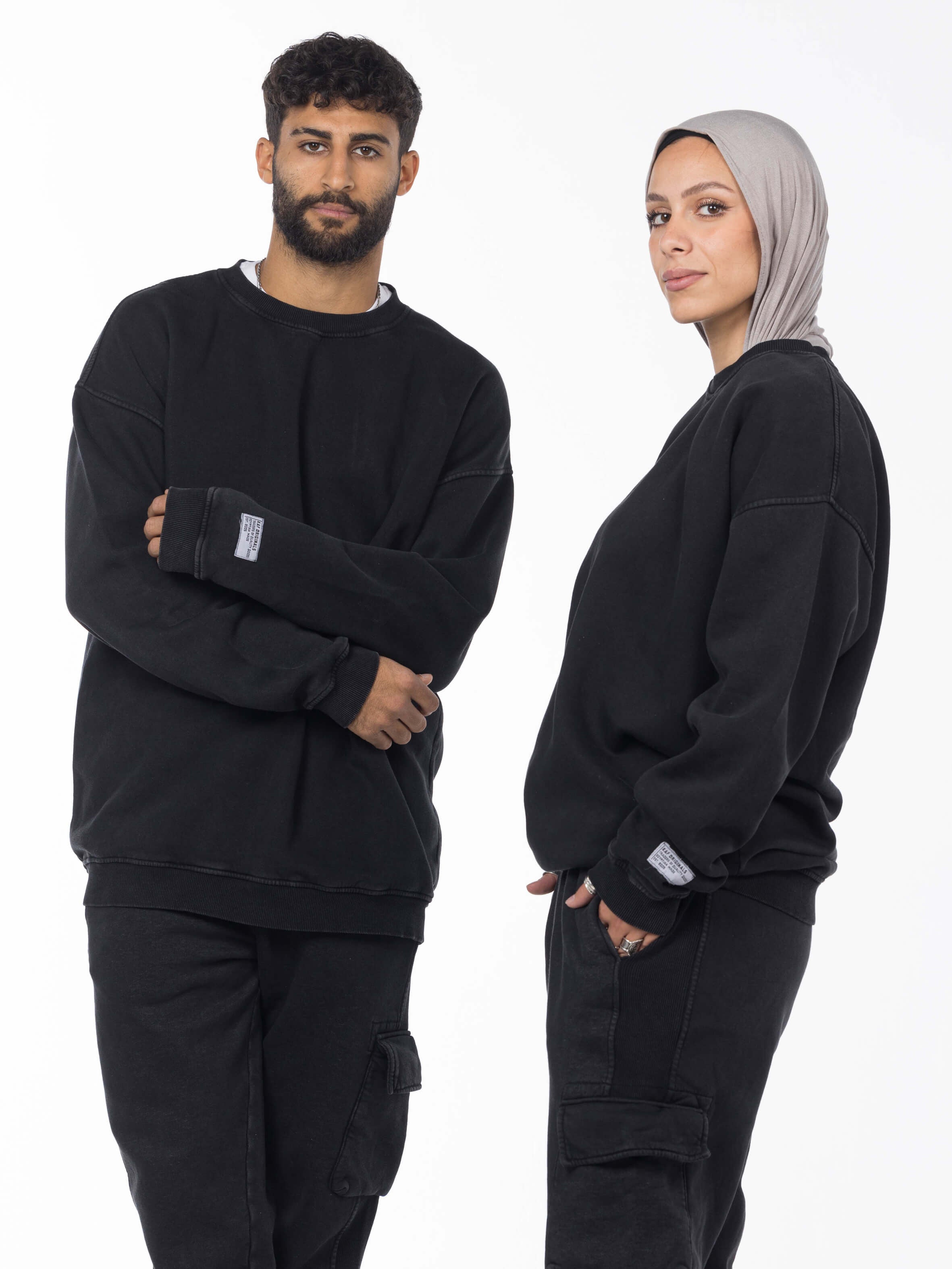 Unisex Acid Washed Crew-Neck Sweatshirt - Black