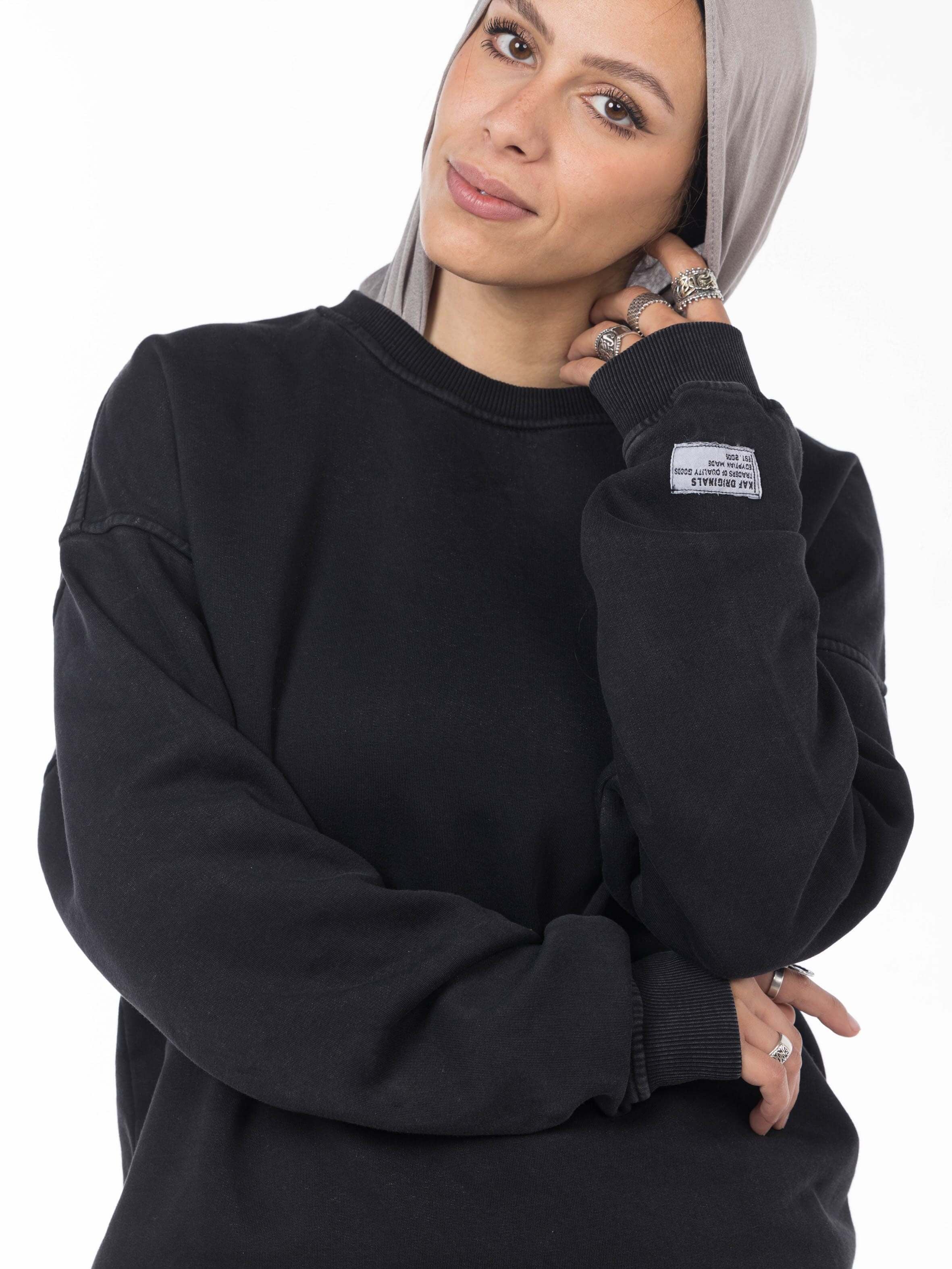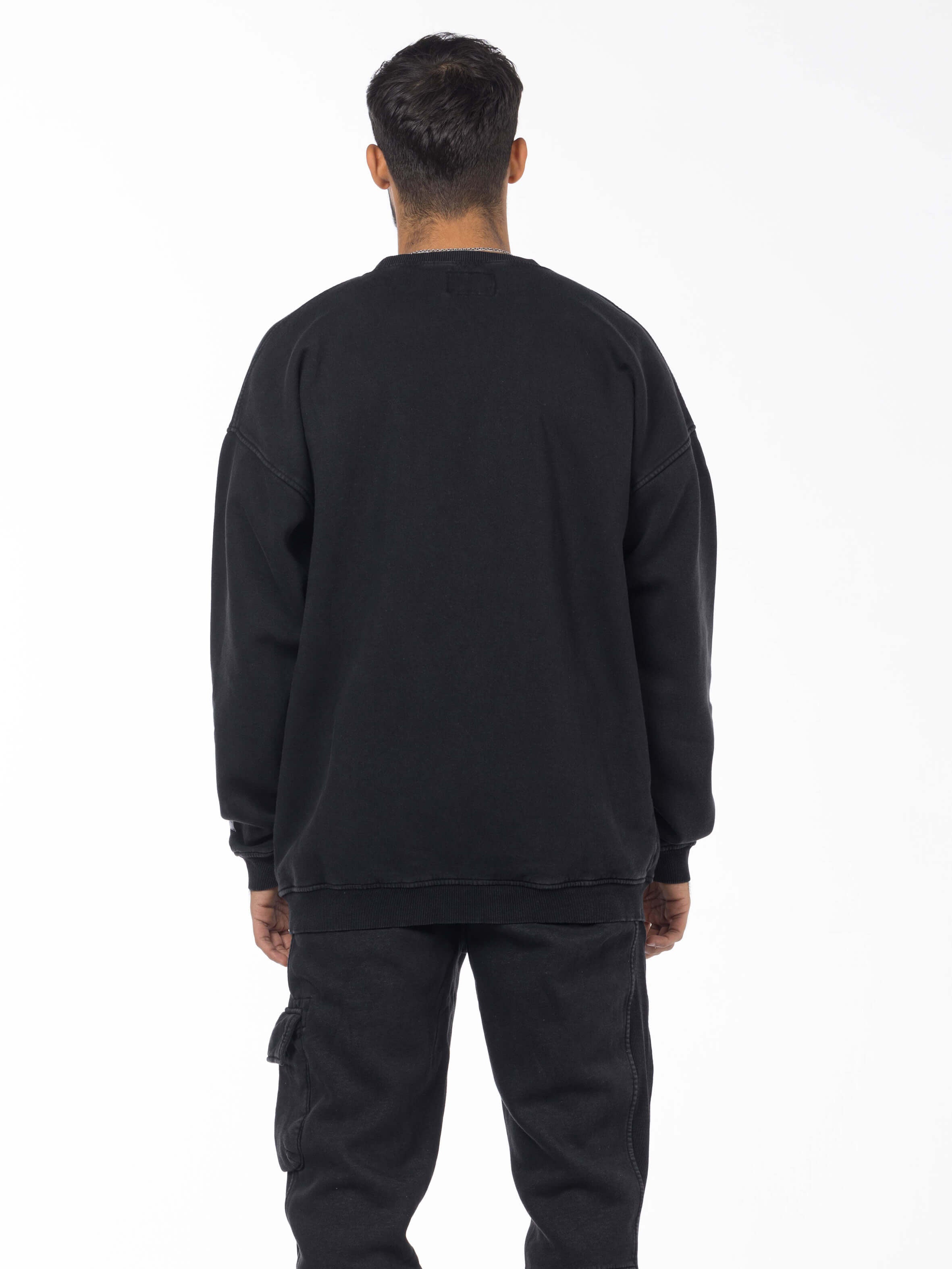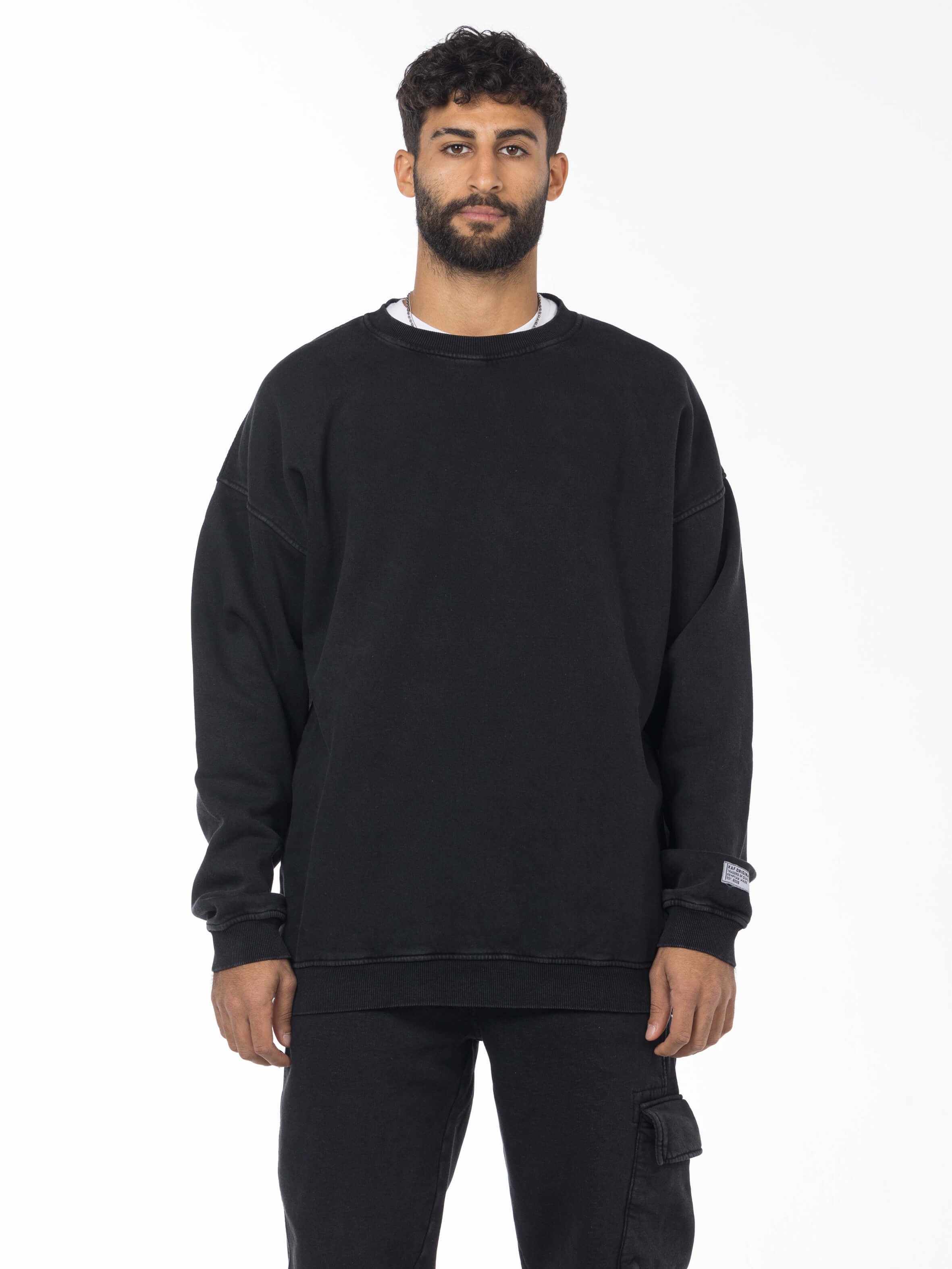 Unisex Acid Washed Crew-Neck Sweatshirt - Black