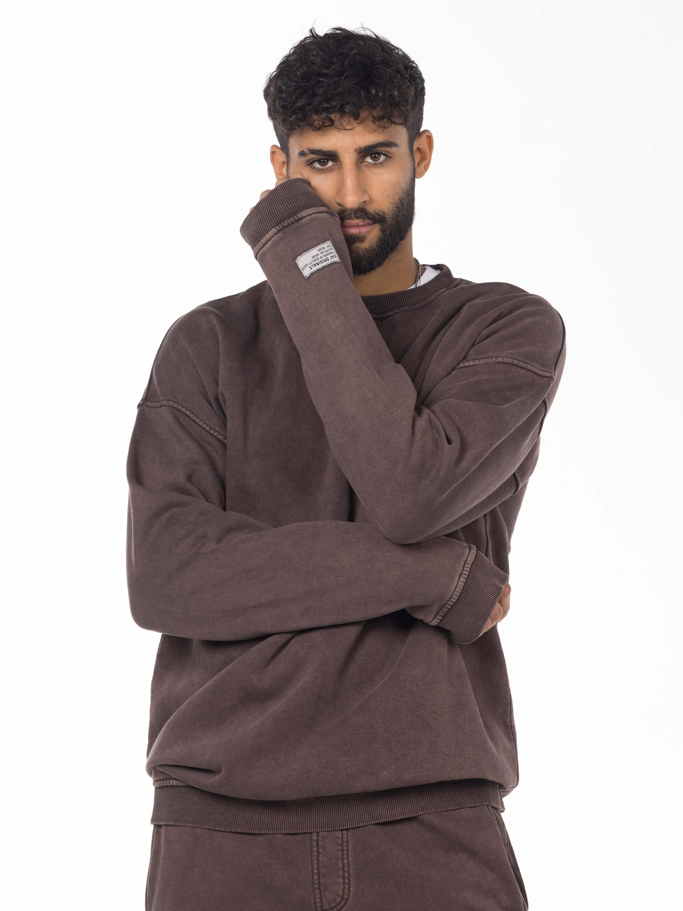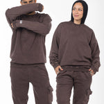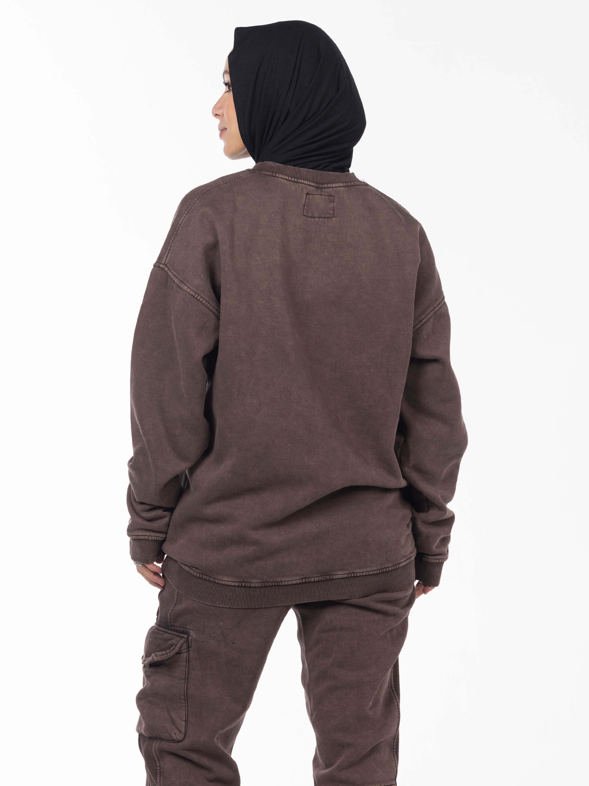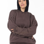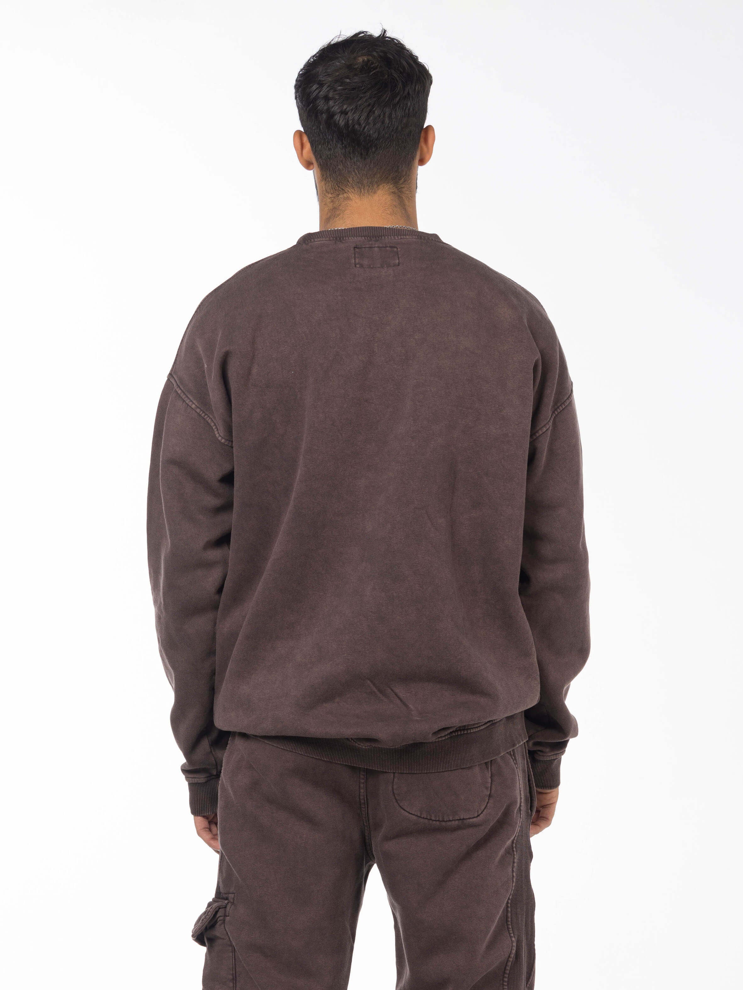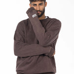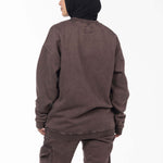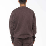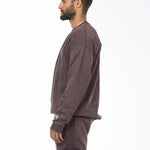 Unisex Acid Washed Crew-Neck Sweatshirt - Brownish