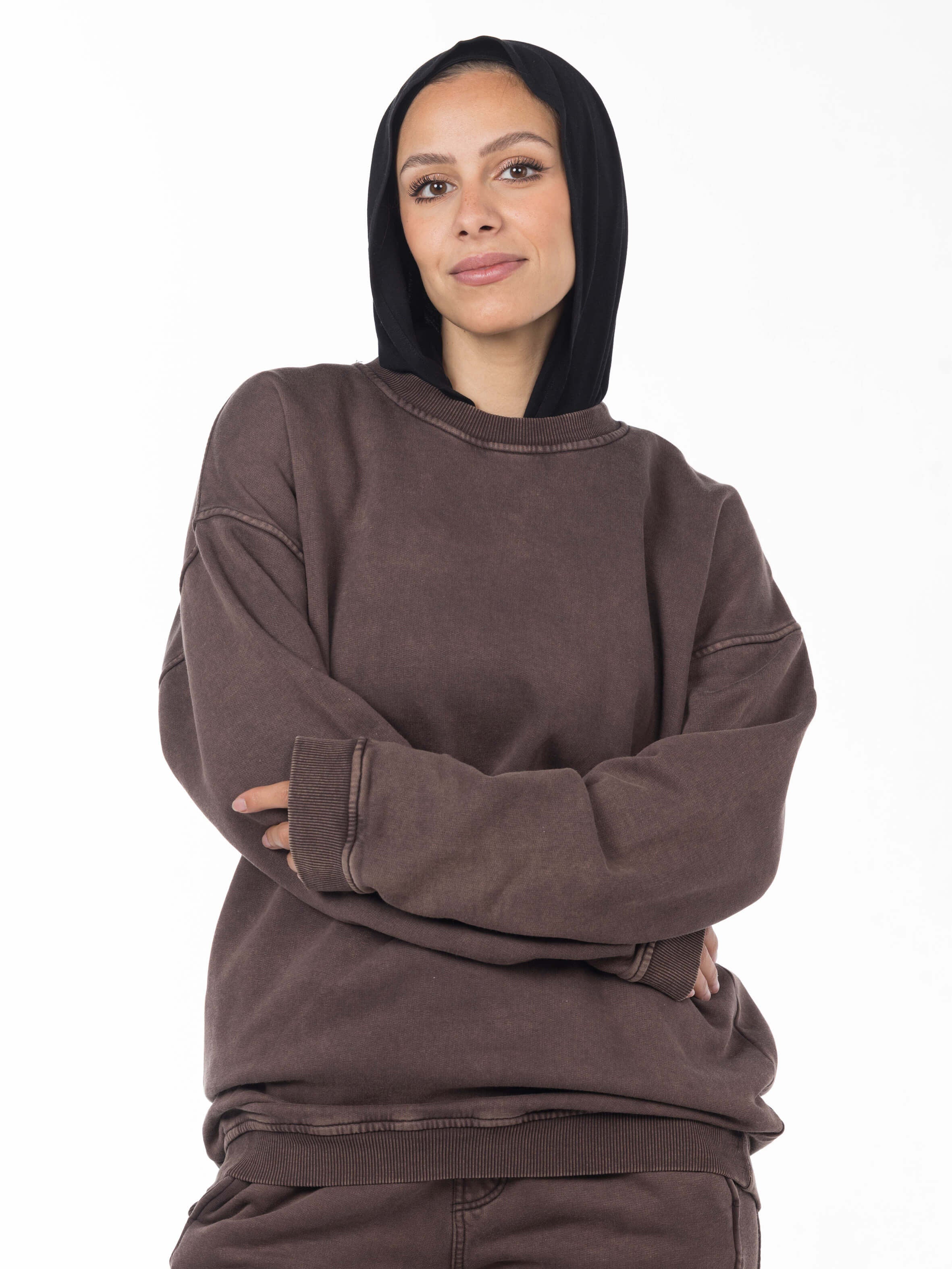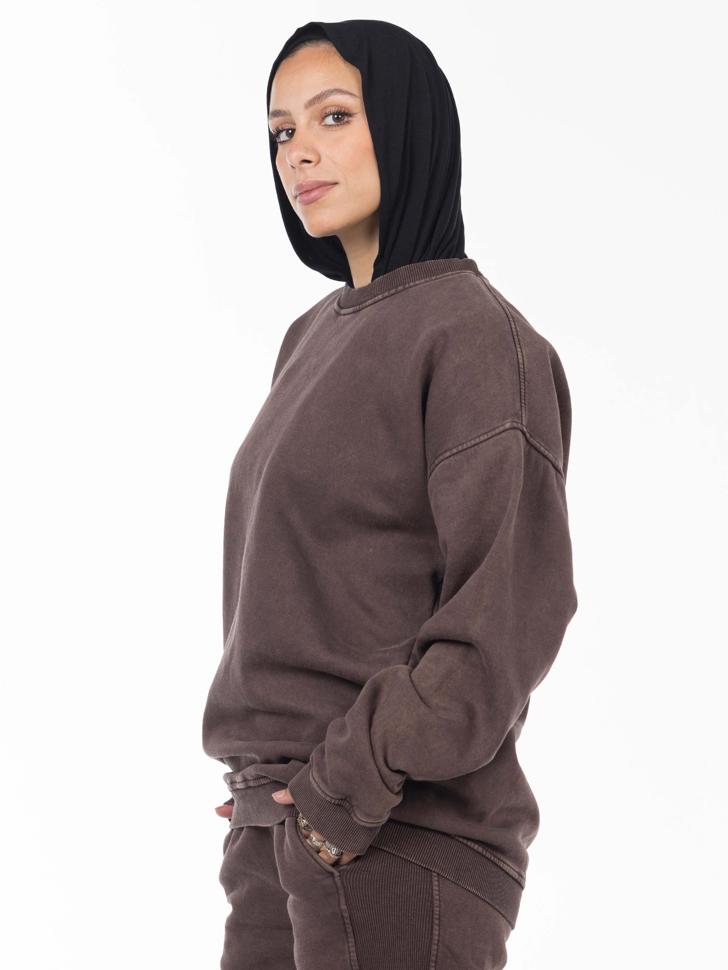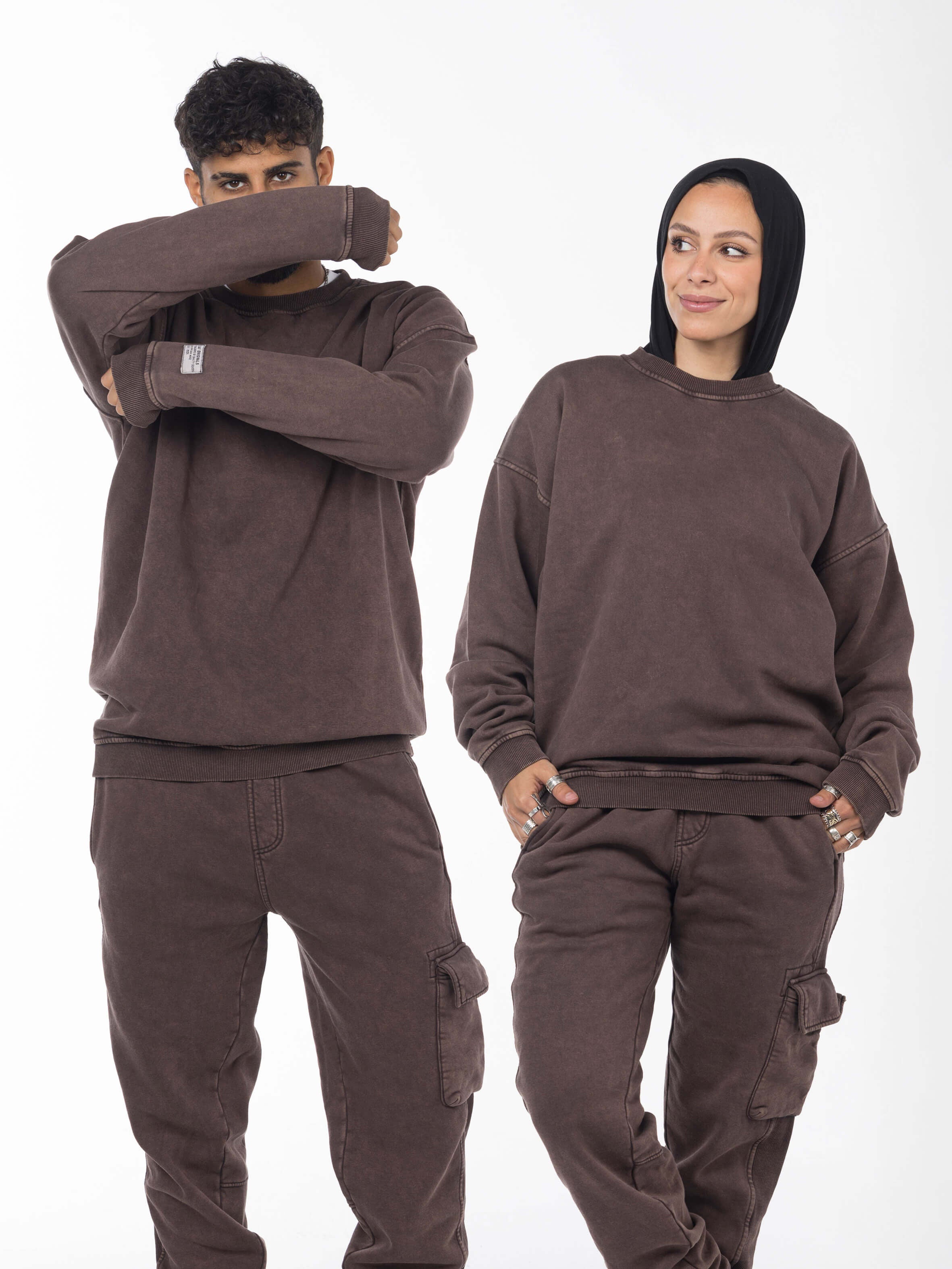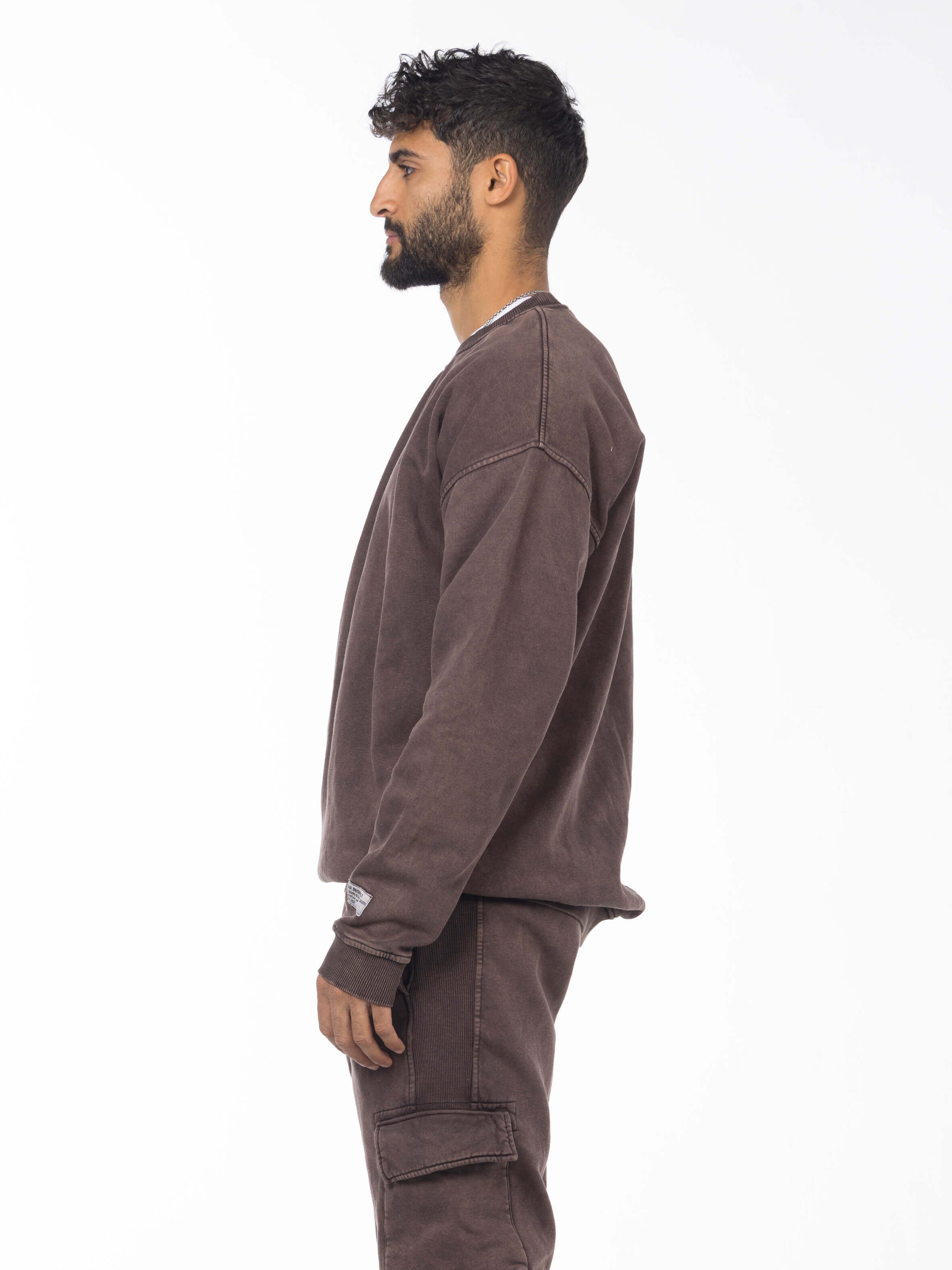 Unisex Acid Washed Crew-Neck Sweatshirt - Brownish