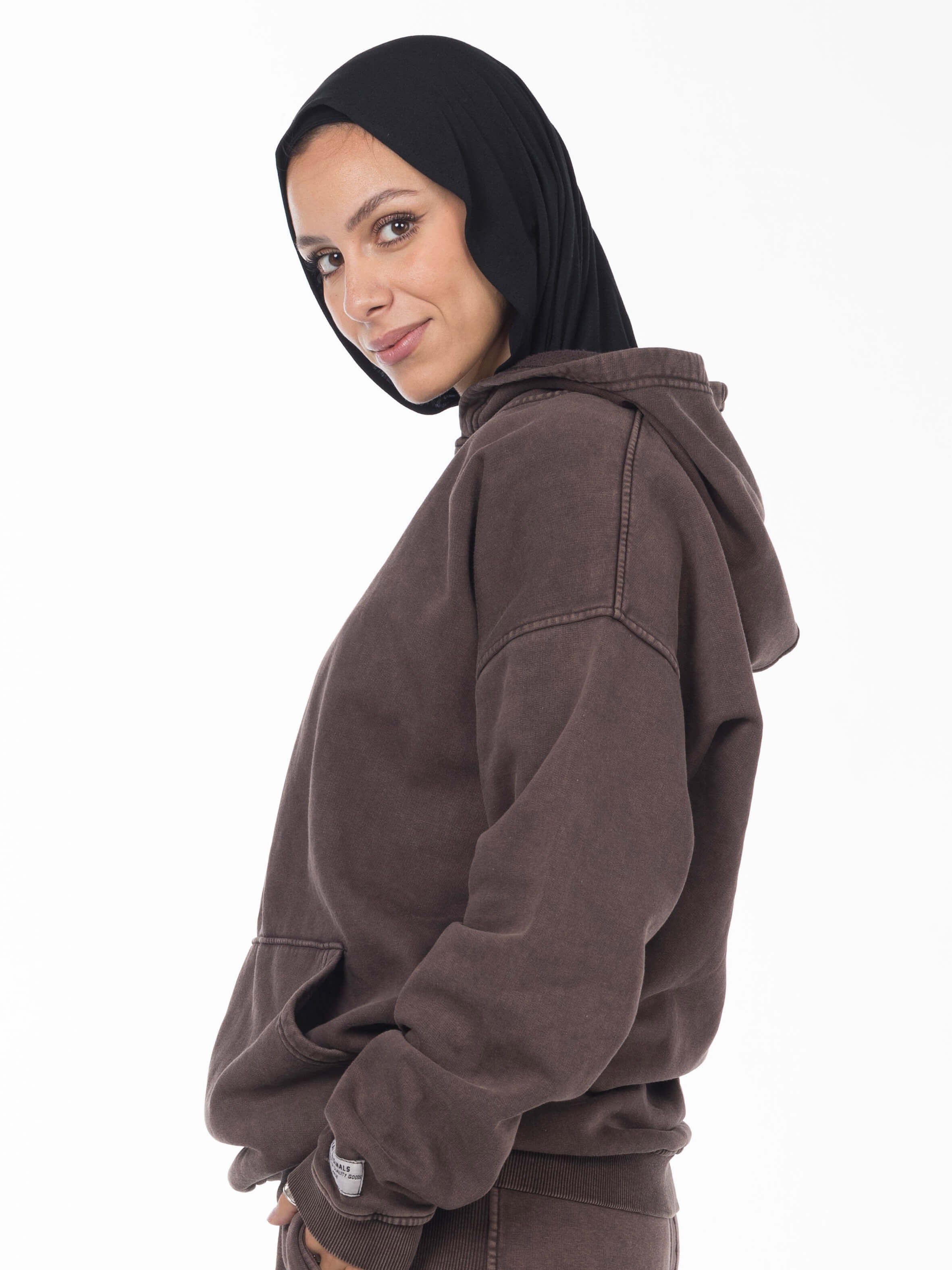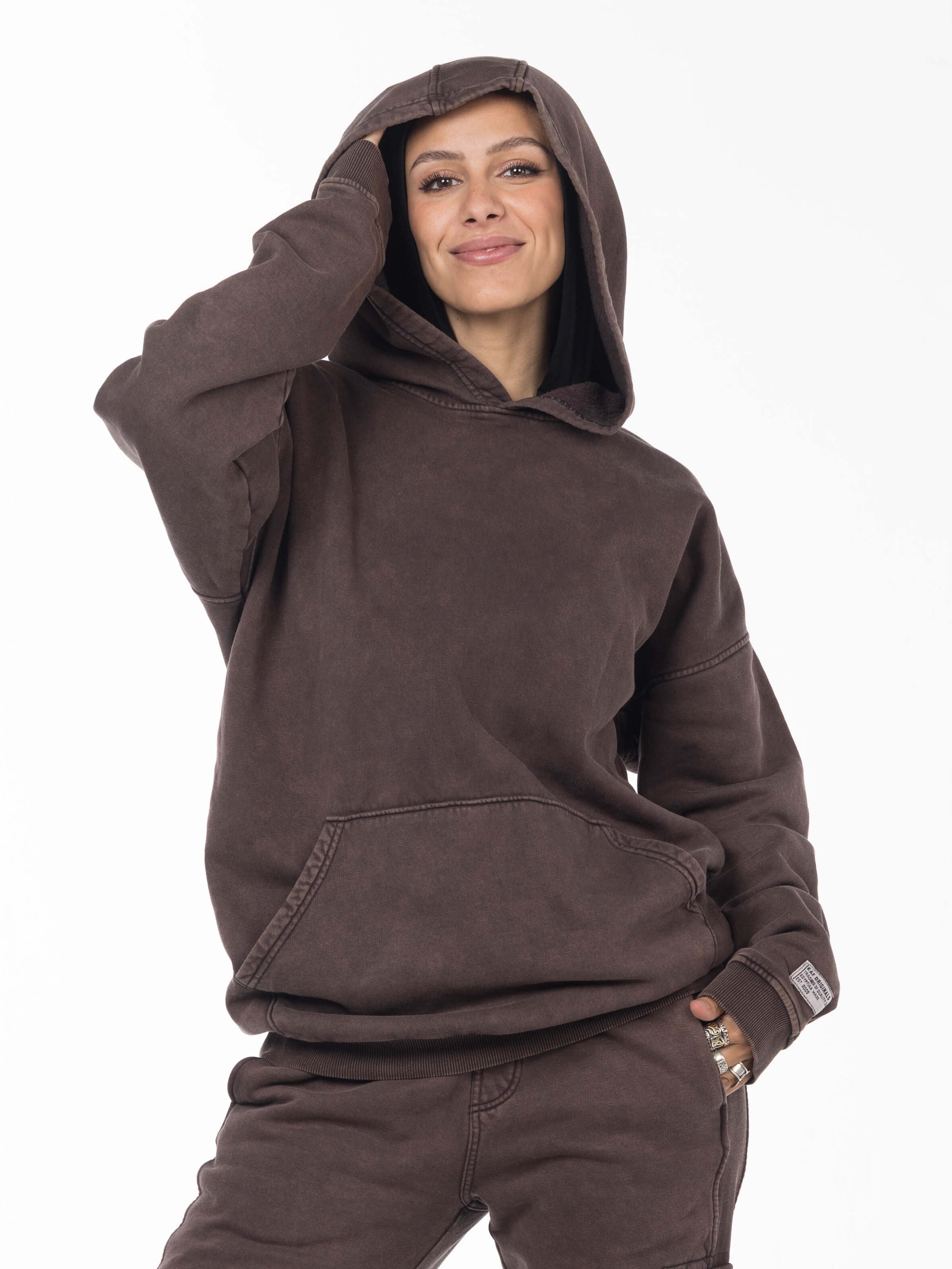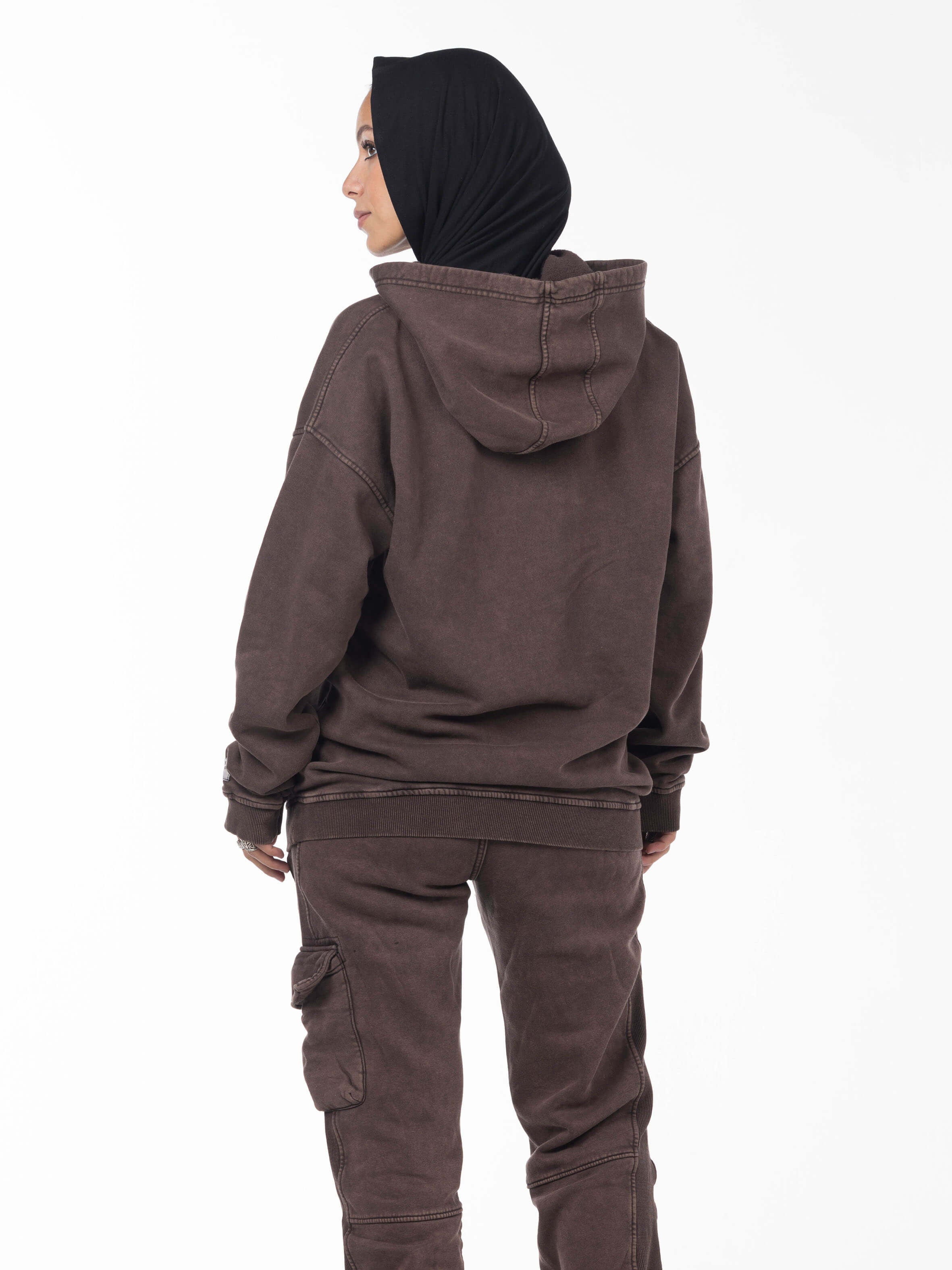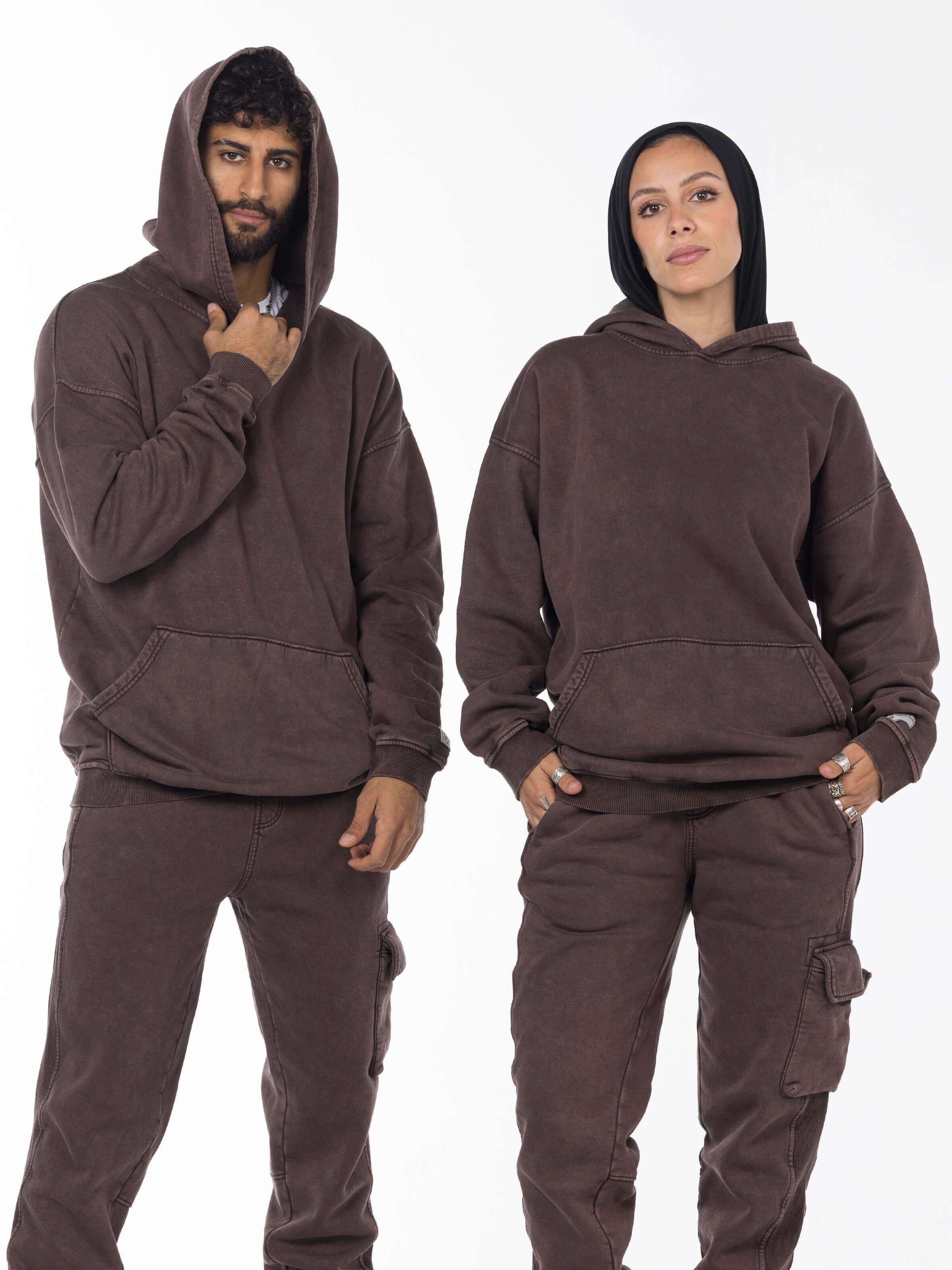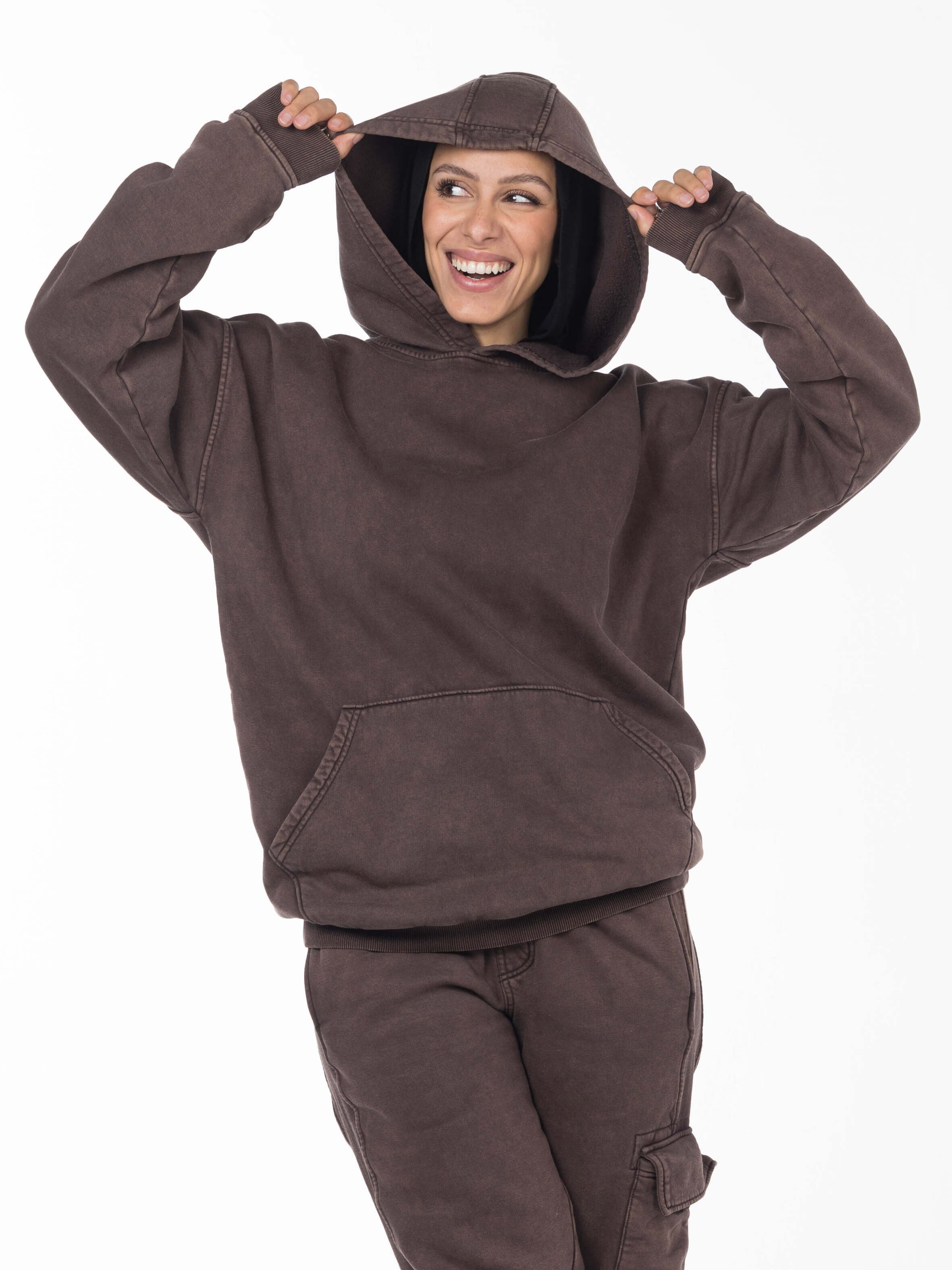 Unisex Acid Washed Oversized Hoodie - Brownish