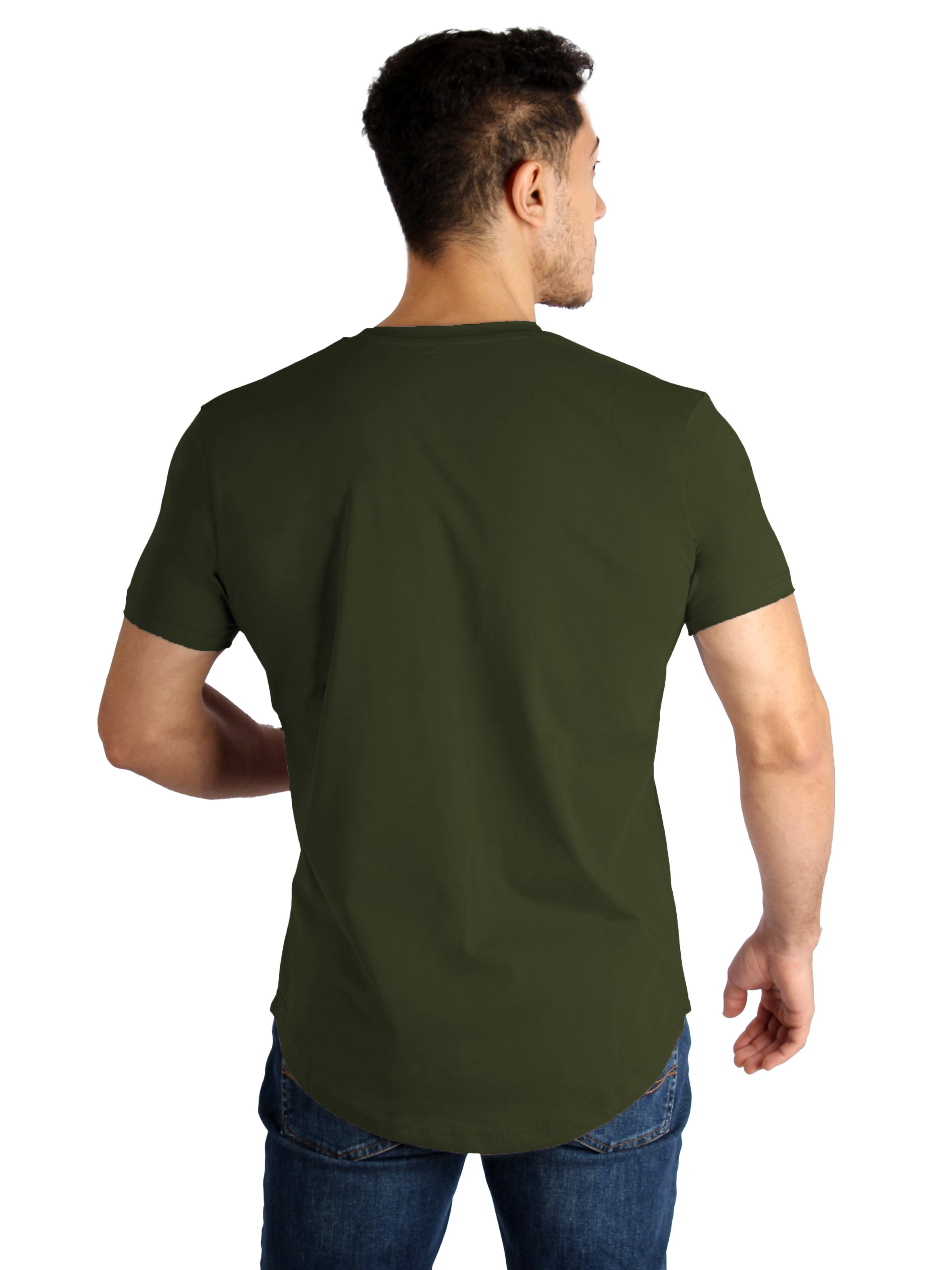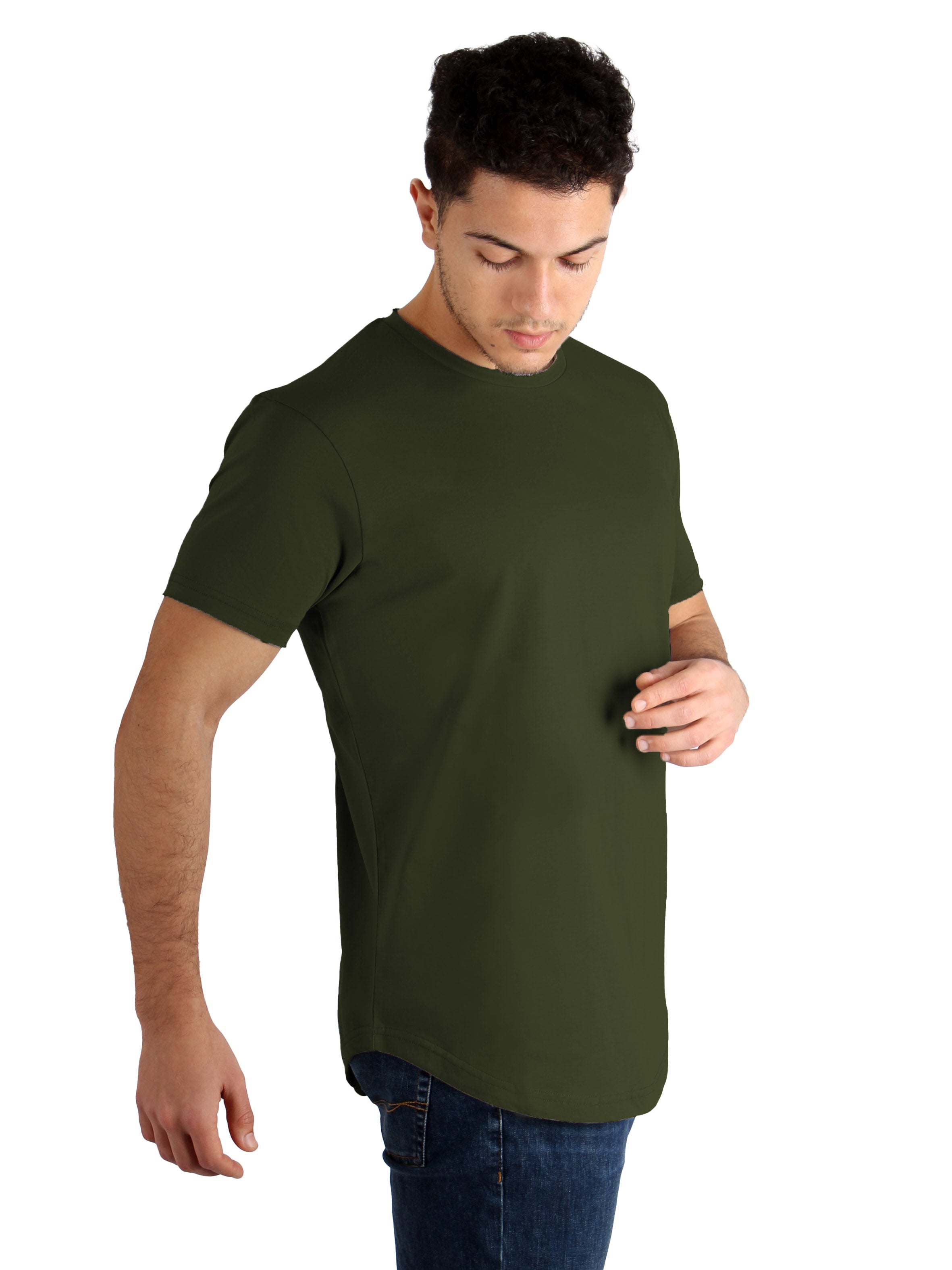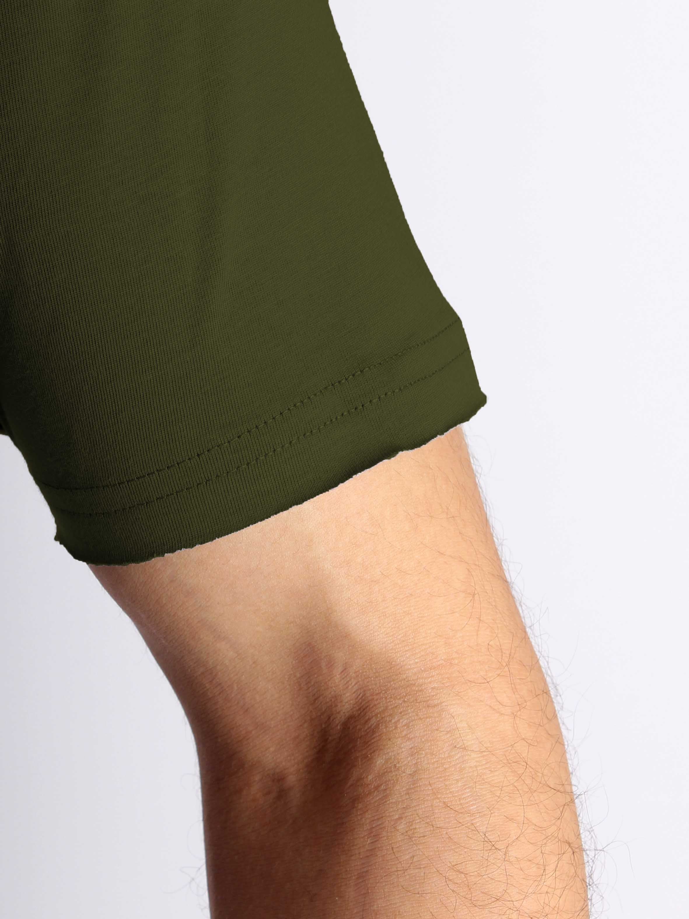 Raw Edged Basic Cotton T-shirt Men - Dark Olive